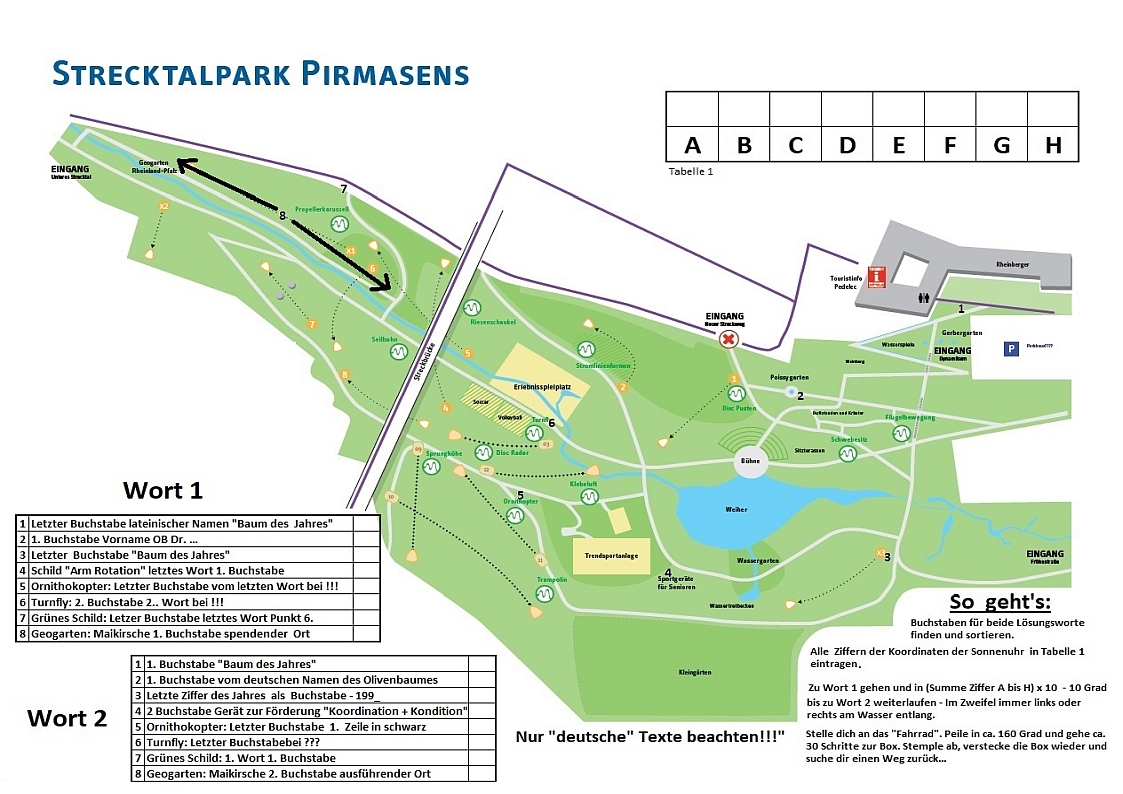 2 Wasserspielplätze, Diskgolfanlage, Skateanlage, Streetball,