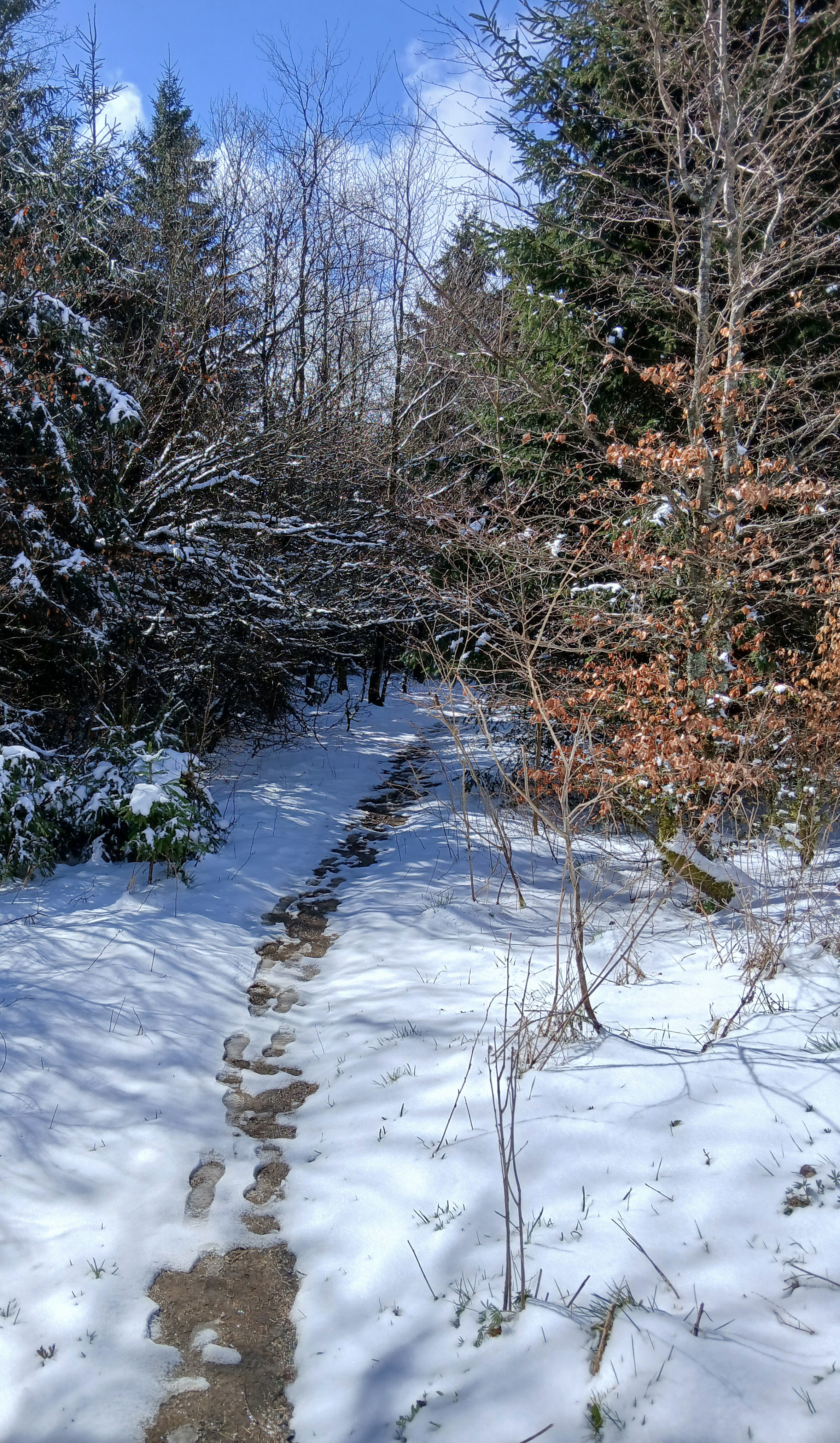 Doch diese 7 Kilometer sind es wert, nochmals gelaufen zu werden. Heute ging man auf schönen Pfaden, die teils mit Schnee bedeckt waren.