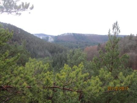 Am Sonntag (22.04.18) stand zunächst die Süd-Tour auf dem Programm. Wieder ging es zuerst lange bergab. Die vernichteten Höhenmeter und mehr mussten dann anschließend durch einen strammen Aufstieg wieder gewonnen werden. Wir erreichten relativ früh die Einkehr, so dass wir auf eine längere Pause verzichteten, zumal noch die Nord-Tour auf dem Plan stand. Das war gut so, da wir auf dem Abstieg bald einen tollen Aussichtpunkt erreichten und dort in Abgeschiedenheit rasten konnten. Anschließend ging es in Richtung Zielgebiet. Der Hinweis mit dem Auslassen des ersten Felsblockes hat uns sehr geholfen und wir begannen an der richtigen Stelle mit der Boxensuche. Auch nach unserem Geschmack ist das Versteck sehr schwierig zu erreichen und es gäbe genügend andere Möglichkeiten, um die Kraxelei in Grenzen zu halten.