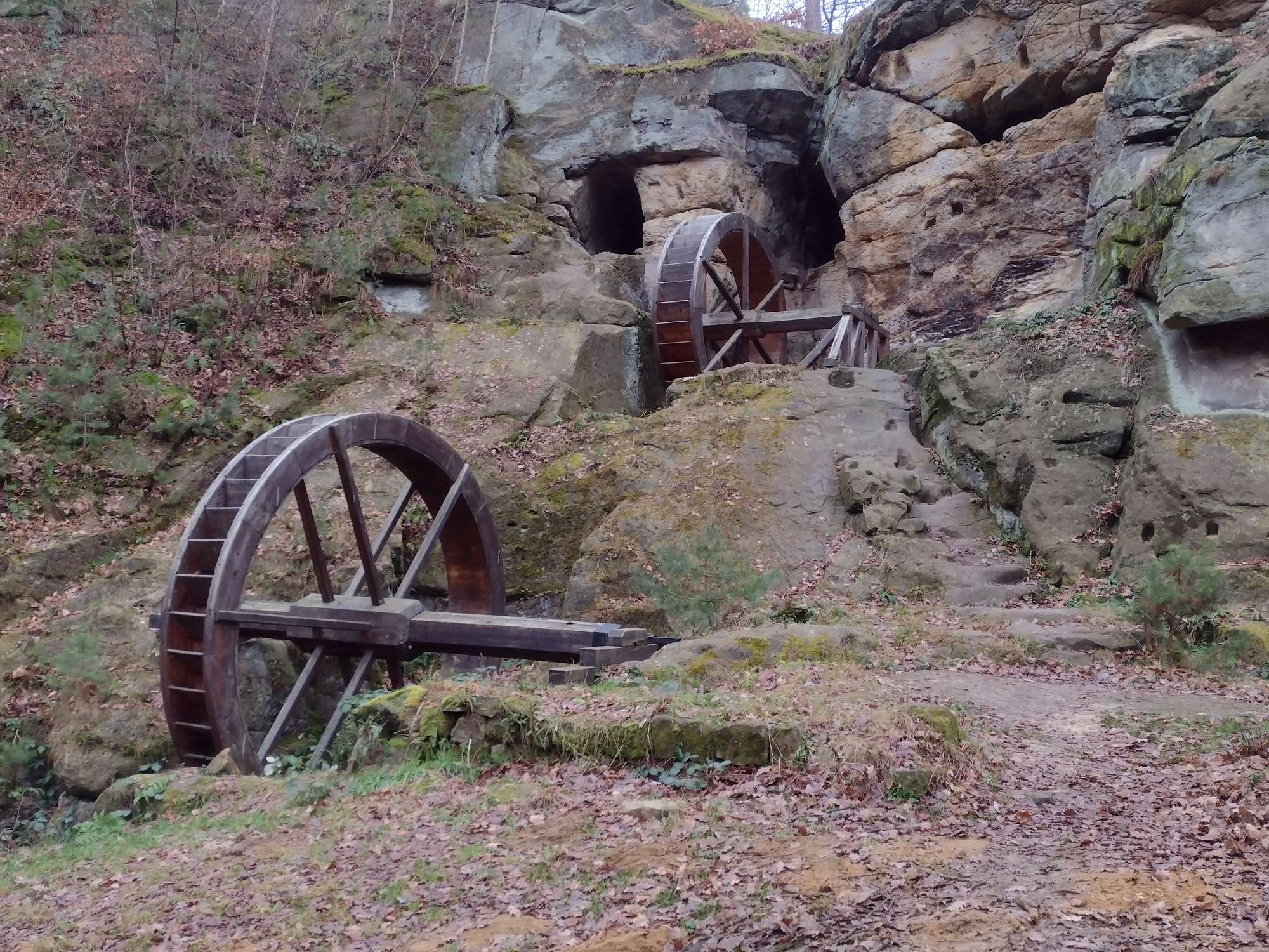Nach der Ruinenbesichtigung sollten die Höhenpunkte der Tour immer noch kein Ende finden. Es warteten noch die beiden Mühlräder auf uns. Auch hier hatten wir uns noch Zeit genommen die Infotafeln rund um den Felsen zu studieren.