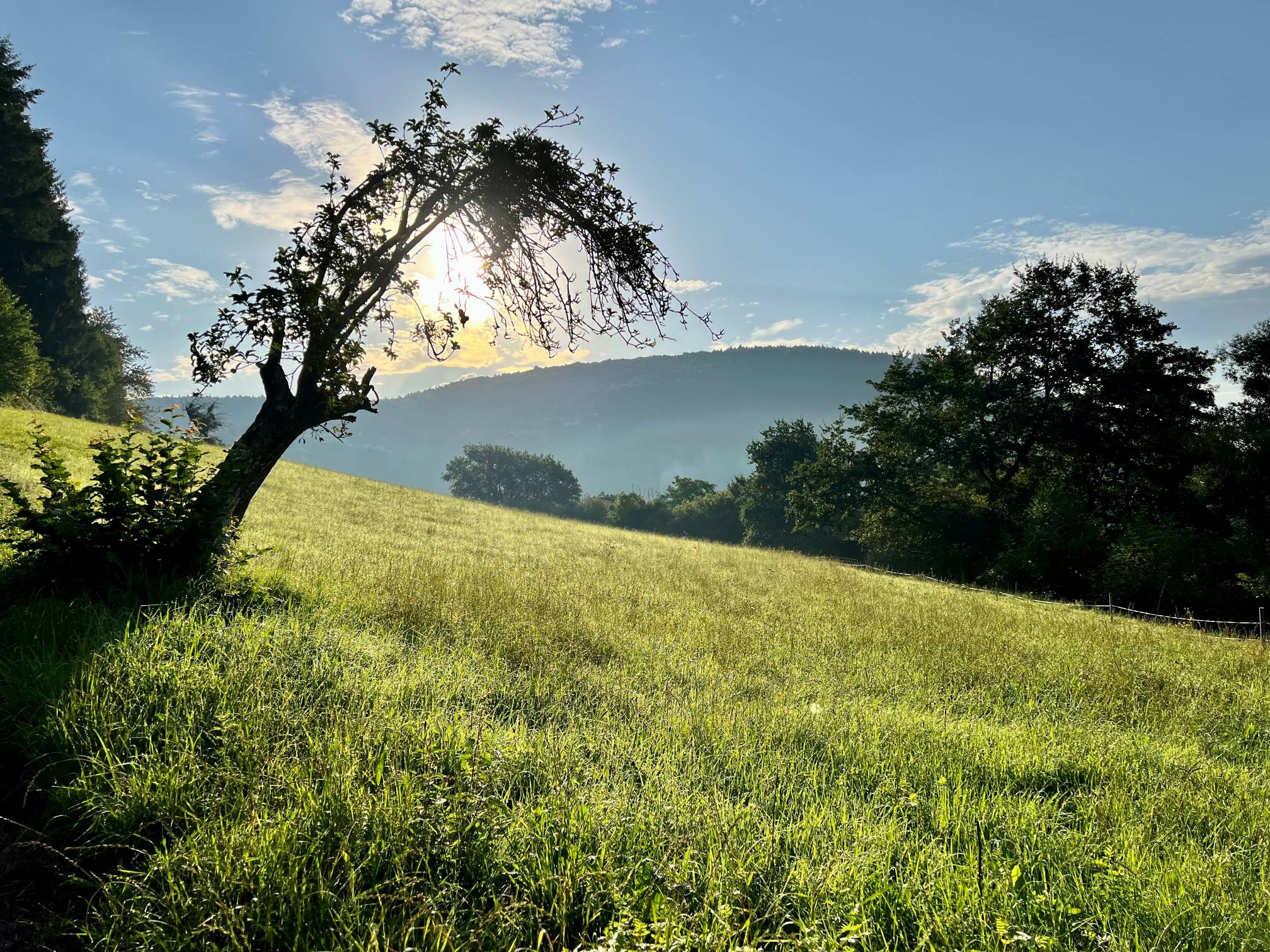 Die äußeren Rahmenbedingungen waren perfekt, die Hitze ist weg und so konnten wir bei idealen Wandertemperaturen loslaufen.:wink: Was uns besonders gut gefiel, war hier der charakteristische Odenwald mit seinen Buchenwäldern, die immer wieder von Wiesen unterbrochen wurden. An denen ergaben sich immer wieder tolle Aussichten. Manchmal kam richtig Allgäufeeling auf, als noch Kuhglockengeläut dazu kam.