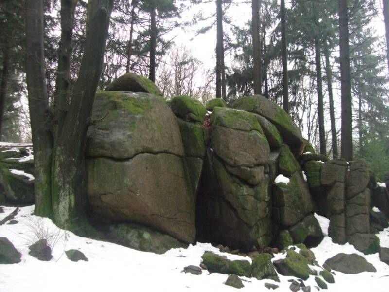 Östlich der zweiten Kuppe des Eichelbergs findet man eine hochinteressante Felsformation, die heute noch im Volksmund WILDELEUTSTEIN heißt. Das ist eine Bezeichnung, die sich auf einen gewaltigen Granitfelsen bezieht.